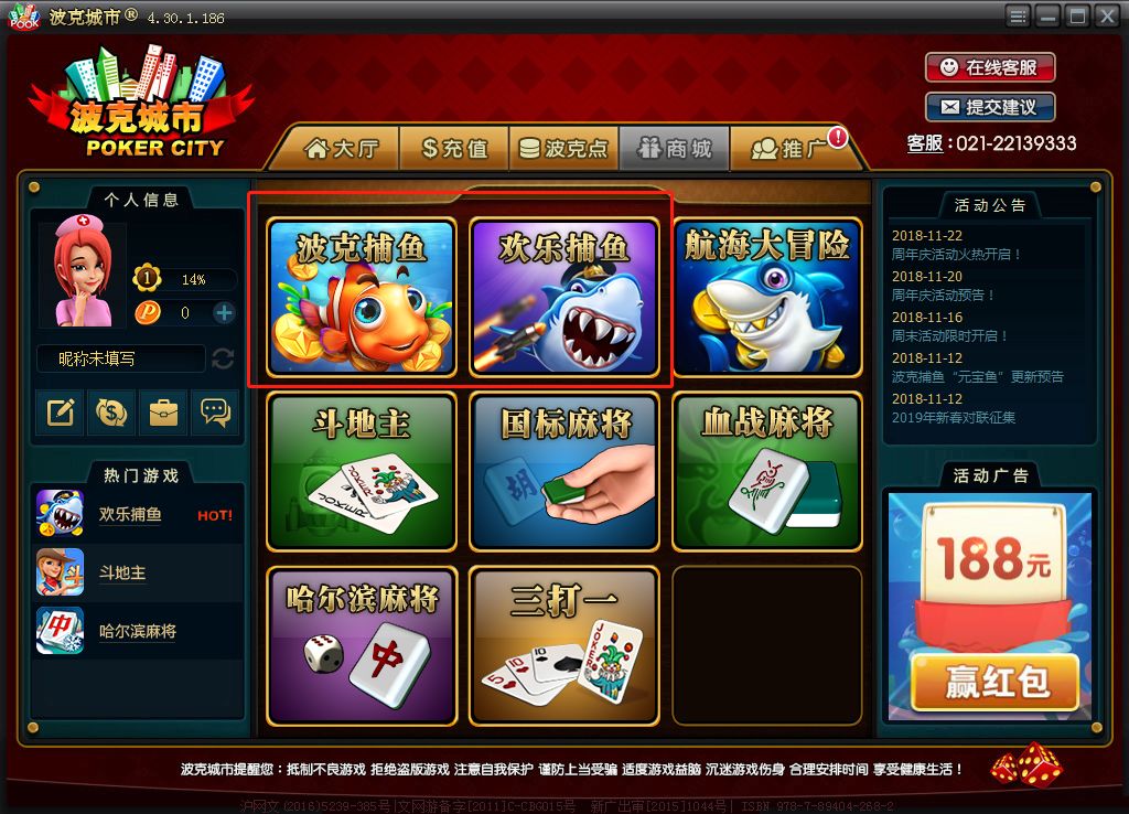▲波克城市运营的游戏平台并无“捕鱼达人”字样