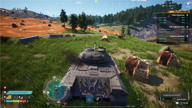 类似的建造内容贯穿着玩家的“衣食住行”,而行的革新,同样也是游戏的亮点。在《The Front》中,玩家可制造并驾驶20余种功能载具,其中有能辅助玩家获取资源的卡车、伐木车、采矿车等功性能载具;还有自行高炮、武装直升机,坦克这些代表着火力即正义的高规格武器。载具的多样性,使得无论是追求和平发展的种田党,还是致力于开拓征伐的进取型玩家,都能找到适合自己的移动装备,大大拓展了游戏的玩法维度与重复可玩性。