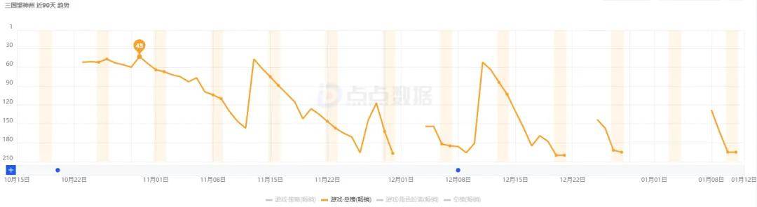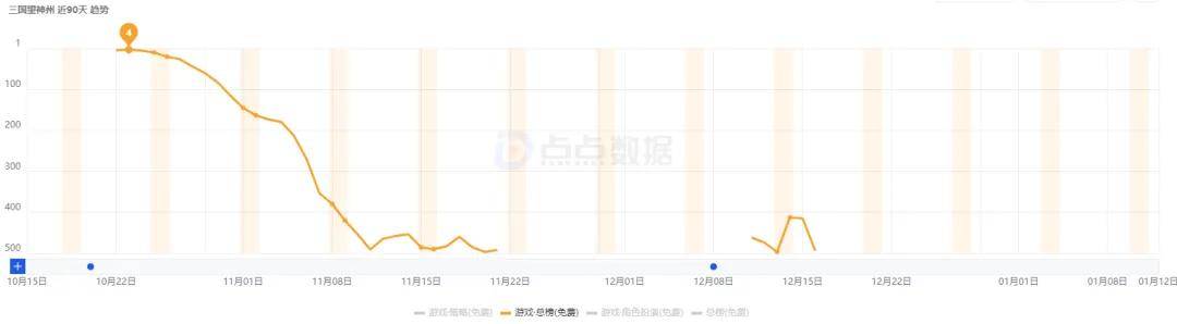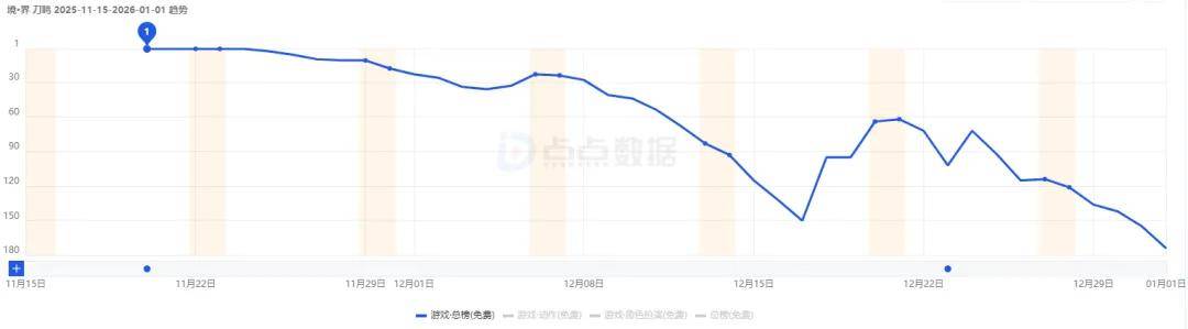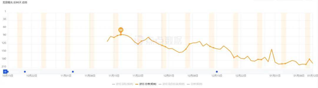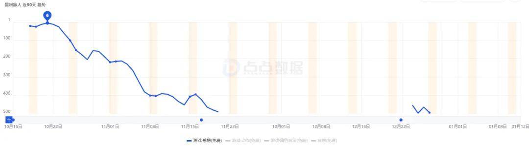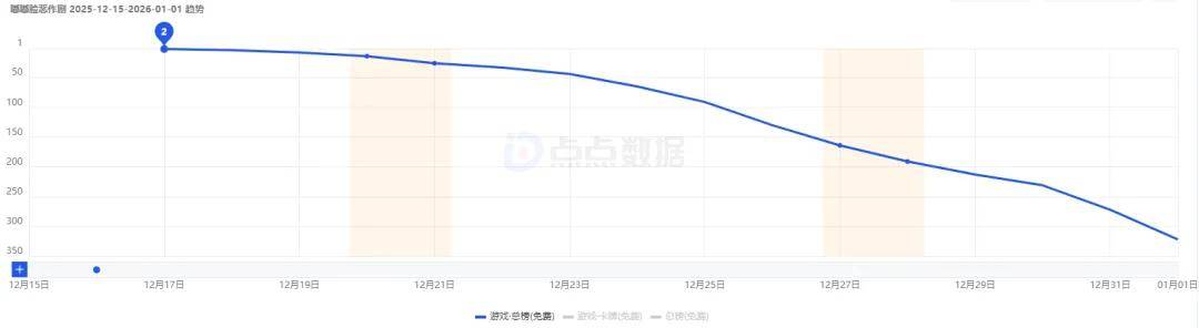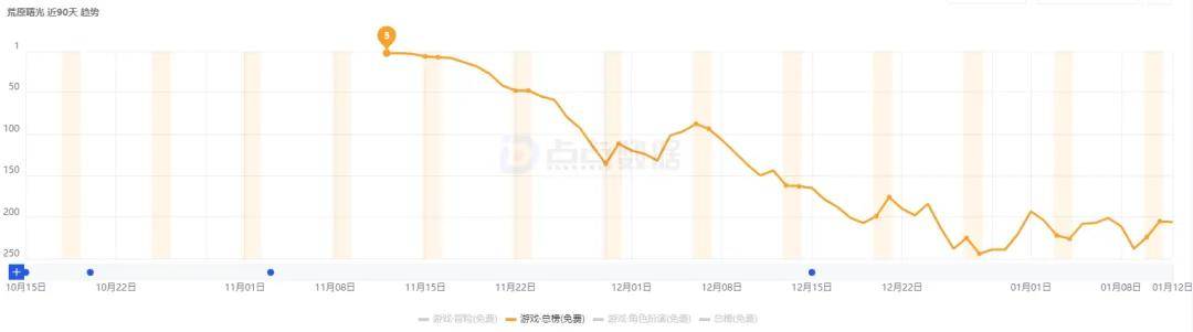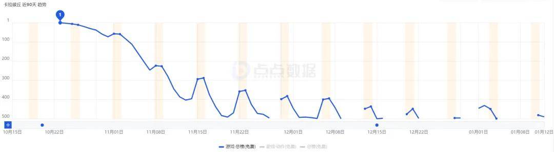 《卡拉彼丘》手游在登顶App Store游戏免费榜后,其名次快速下探,从12月到现在基本是偶尔能冲到免费榜TOP500以内的程度了。