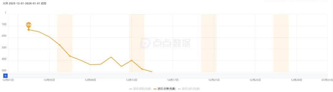 其成绩也只有公测前几天够看,在App Store游戏免费榜上,《火环》于12月3日冲到了134名后迅速飞榜。
