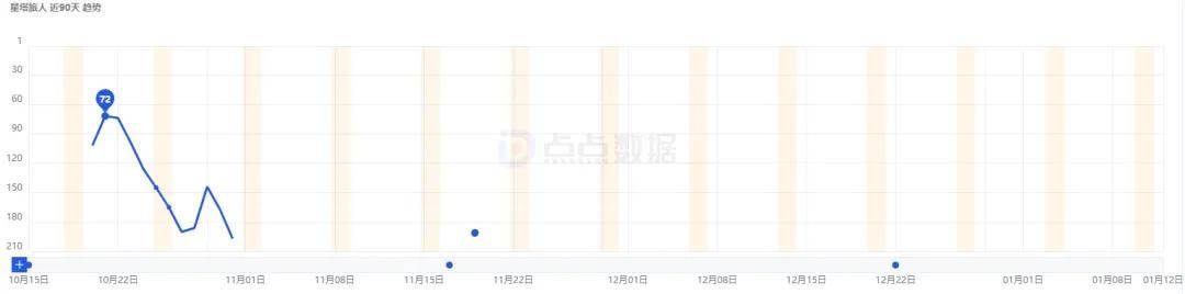 据点点数据显示,游戏上线后,在App Store游戏畅销榜上最高冲到了第37位,而后呈小幅下降趋势,近90天多在100-200名之间徘徊。App Store游戏免费榜方面,最高排名为第10位,而后稳定在了150-250名这一区间。