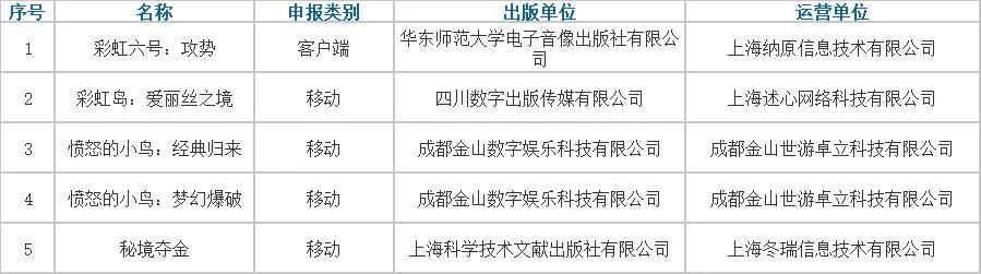 5款进口网络游戏完整版号名单如下: