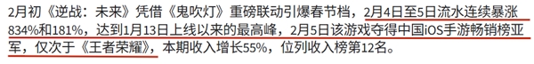 Sensor Tower的数据也显示,2月该游戏收入大涨55%,其中2月4日至5日流水连续暴涨834%和181%,创下上线以来的新高。在习惯了“与人斗其乐无穷”的国内射击市场,一款靠“与怪斗”杀出重围的PVE产品,能交出这样的成绩单,着实让行业侧目。