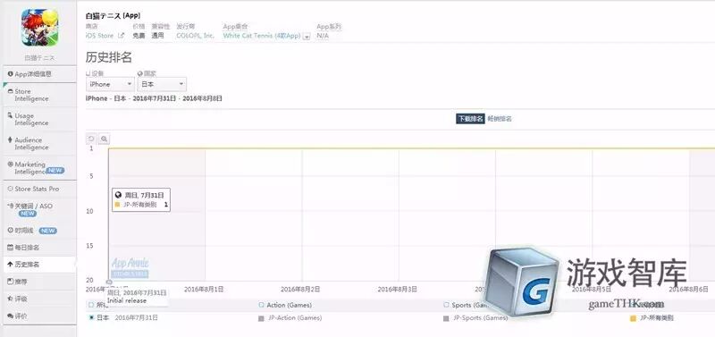 "Pokémon GO"可能是全球半年内永恒的主角。但是,精灵们在“家乡”的成绩单并不如想象得那么唯我独尊。"Pokémon GO"7月22号在日本AppStore上线,12小时便登顶畅销榜,不过免费榜却遭到了其他产品的狙击。这款“其他产品”就是本期智观全球日本榜的另一位主角——《白猫网球》(白猫テニス)。