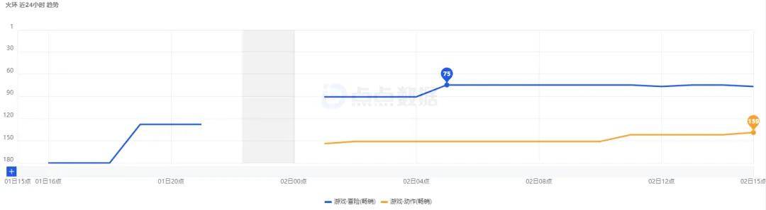 点点数据显示,《火环》iOS版本上线后,仅排在国区App Store游戏冒险类畅销榜第75位和App Store游戏动作类畅销榜第139位。