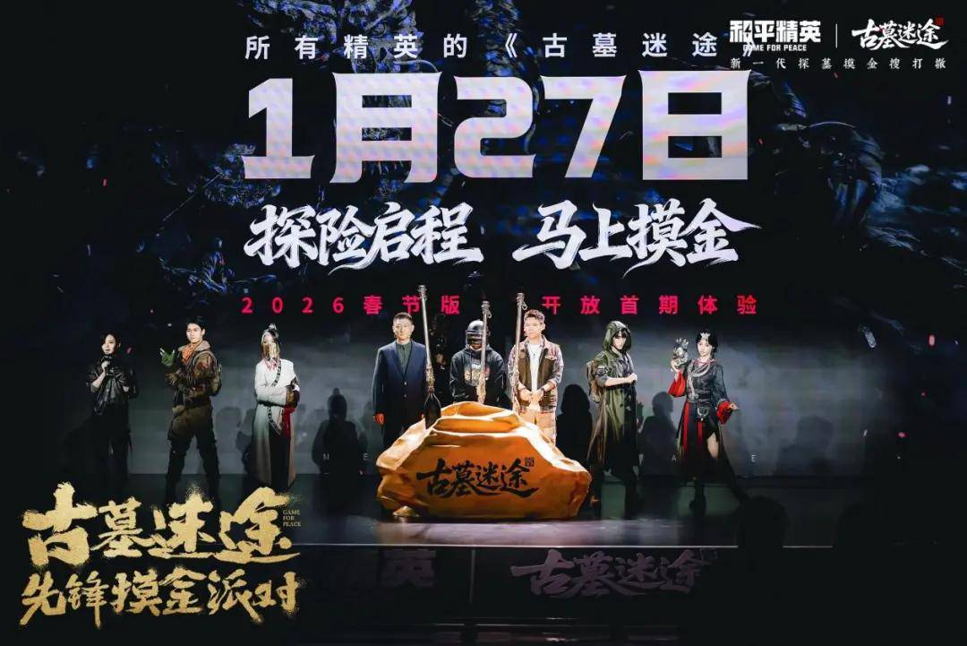 不过发布会上最重磅的,还是“和平精英“古墓迷途”将于1月27日,在2026马年春节版本开放首期体验”消息的官宣,这也让本就自带“热搜体质”的《和平精英》,又一次冲上了抖音、微博等社媒的热榜。